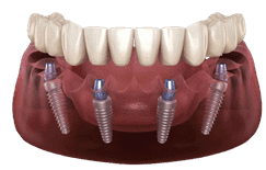 With All-on-4 Implants, we can extract any teeth and place all the necessary implants on both arches in the same day. After the implants are placed, you will have a new, temporary but functional, set of teeth fitted onto your arch.